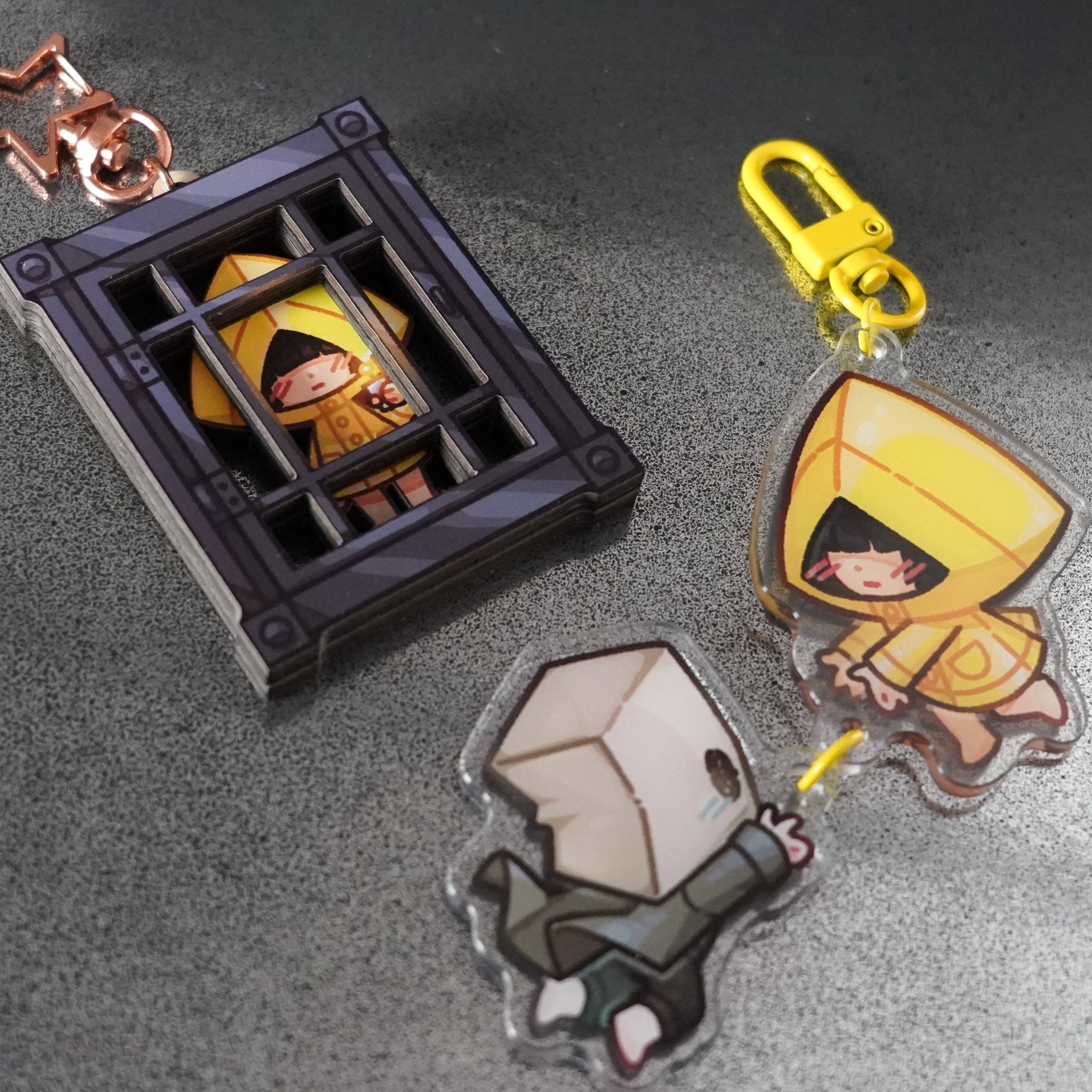 -Double hooked charm.-5cm each, double board.-Yellow hook.-Double sided printed.